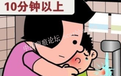 ?、穸戎钙つw表層受到損傷。受傷的皮膚紅腫有疼痛和燒灼感,受傷當時馬上用自來水沖洗燙傷部位l0min以上,降低燙傷部位溫度;用自來水浸泡或用紗布濕敷,燙傷后越早用冷水浸泡效果越好;水溫越低效果越好但不能低于6℃。及時散熱可減輕疼痛或燙傷程度,至創(chuàng)面無疼痛感為止。如果寶寶穿著衣服被熱水燙到時,若無法馬上脫下衣服,可讓寶寶先泡到浴缸里再把衣物脫掉,或用剪刀將衣服剪開取下;去除衣物后,也要用自來水大量沖淋、浸泡燙傷的部位替?zhèn)诮禍亍R话?0min左右的降溫時間即可。寶寶的燙傷如果不嚴重沒有造成傷口,媽媽可以為寶寶涂抹紫草油或燙傷藥膏。2~3d后表皮干枯脫落而不留疤痕。