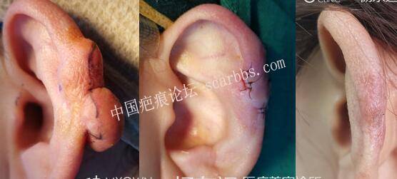 2. 疤痕手術(shù)切除:為了恢復(fù)或保持耳朵的外形,切除疤痕時一般會保留一小部分的薄層疤痕,以免造成外耳的部分缺損。