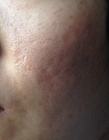 2014年11月室內(nèi)光線最差時(shí)皮膚,做脂肪填充前??涌右呀?jīng)消失或者變模糊,一拉就平。頂光下,這塊皮膚凹凸感變得更強(qiáng)烈。就是為了改善這塊皮膚所以做了填脂肪。