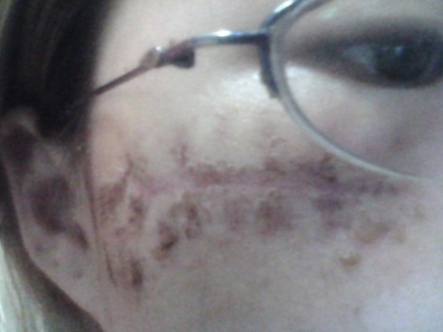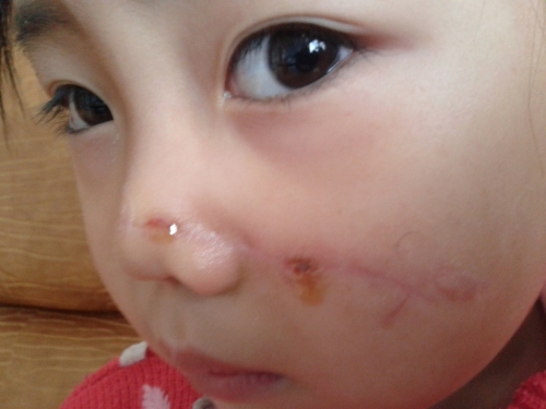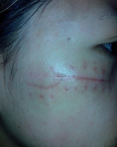 動(dòng)物意外咬傷皮膚凹陷形疤痕,一個(gè)月內(nèi)趕快做了點(diǎn)陣,用的磨削的頭,點(diǎn)陣后此傷疤瞬時(shí)神奇般消失。這是我臉上治療最成功的一個(gè)疤痕。這張照片是當(dāng)時(shí)咬傷后,用以 ...